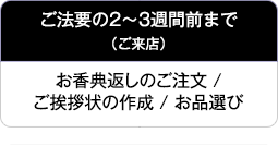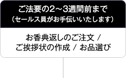 お香典返しは「故人に関する弔事が滞りなく終わりました」というご報告とお礼の意味を兼ねたものとして、ご法要の終了後にお届けします。