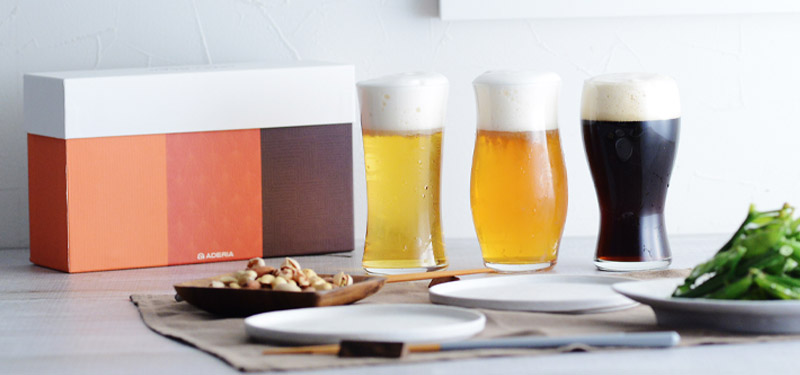 3つのグラスの形の違いは「喉越しの爽快さ」「香りの芳醇さ」「コクの深さ」といった、3つの要素を引き立てる構造で、その日のビールに合わせて選んで、その味わいをより深く楽しむことができます。それぞれに異なるユニークな形にビールの色が映えて、「おうち飲み」でも「オンライン飲み会」でも、デザインフルなビジュアルが注目されるかも。