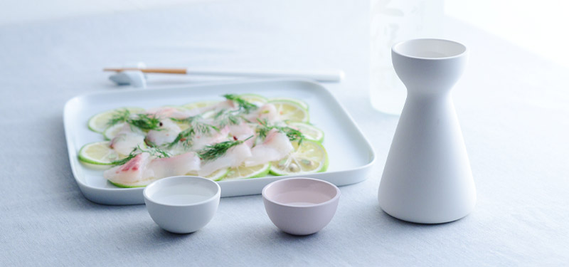 ふんわりとした柔らかな色彩、しっとりとした質感。限りなくシンプルだけど、なんとなく愛嬌のあるフォルムのボトルと、コロンと小ぶりで女性の指にも馴染むカップ2つがセットになっています。そのデザインは無駄のないものだからこそ、どんな食卓にもナチュラルにはまってくれそう。