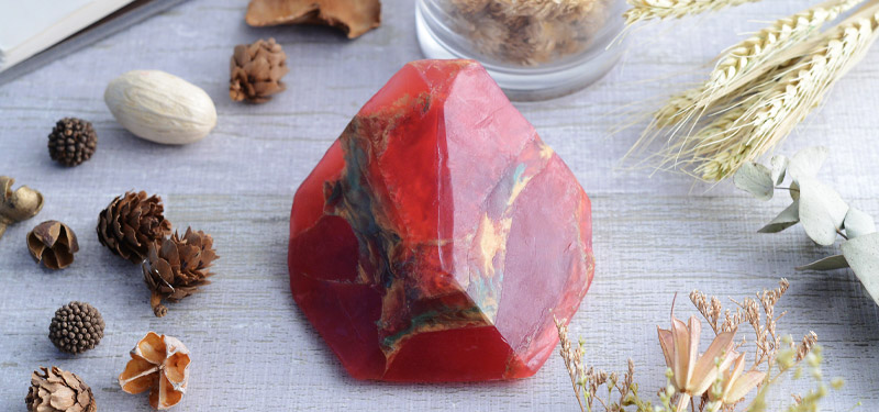 星座ごとに異なる宝石の定義はフランスで用いられているもので、山羊座は「ガーネット」。ずっしりとボリュームのある大きさと豊かな香りで、ビジュアルもユニークさも持ち合わせた宝石石鹸です。