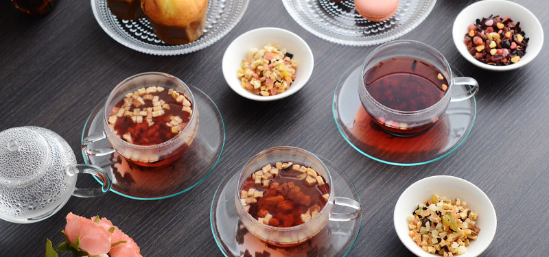 完熟フルーツのときめく香り、口に含んだときの甘みと酸味、そして個性豊かなカラーリング。まさに果実の美味しさがぎゅっと詰まった、ドライフルーツのティーセットが登場です。