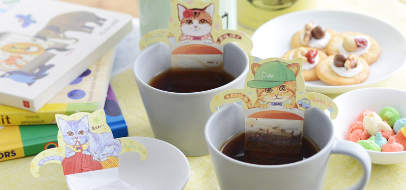 ティータイムでも盛り上がること間違いなしの、カップに寄り掛かる動物たちのティーバッグセットの登場です。猫ちゃん・わんちゃん・海の仲間たちが大集合。