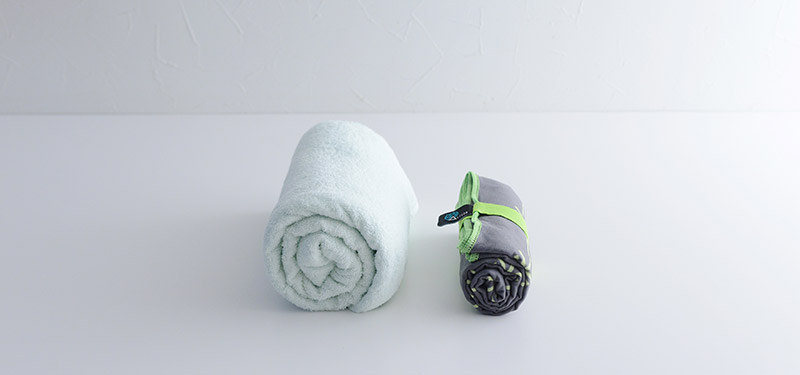 広げれば人がひとり寝そべることができるほどの大判サイズですが、丸めるとコンパクトになり、スポーツや夏レジャーに重宝するアイテムです。