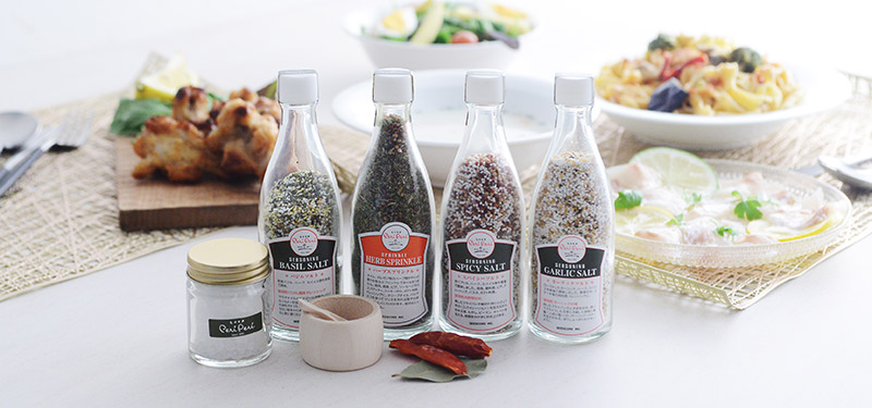 クリスタルソルトに、あると嬉しい洋風ソルト3種とパスタやサラダに使えるハーブスプリンクルを詰め合わせにしました。料理好きの方はもちろん、大切な方や、いつもお世話になっている方への贈り物としてぴったりのギフトセットです。