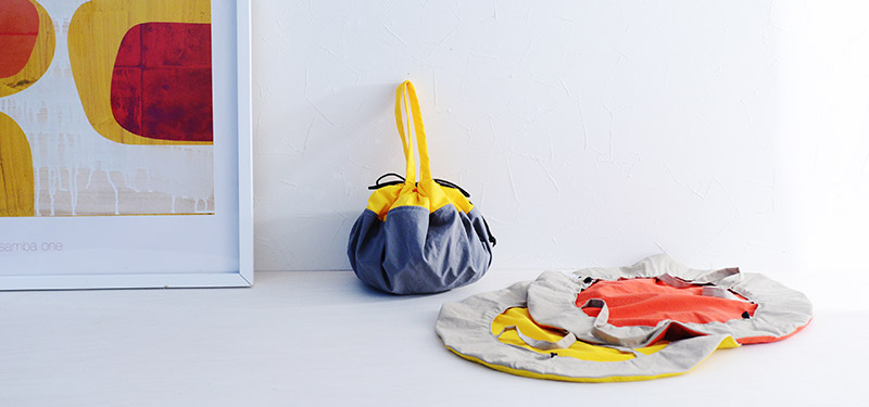 丸めて円錐状になっているこの生地。広げると円になり、真ん中に荷物を載せて持ち上げればバッグになるユニーク&デザインフルなアイテムです。