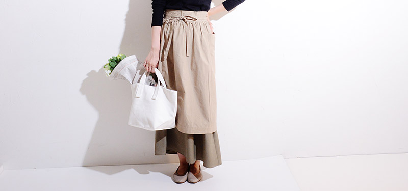 ふわっとしたスカートスタイルは女性の憧れ。どんな時でもおしゃれ心を忘れずにいたい方のためのエプロンのご紹介です。