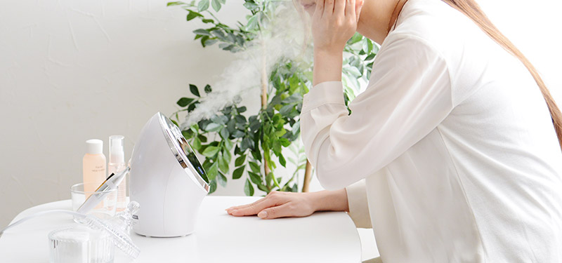マスクや花粉症、季節的な乾燥など、肌荒れの原因になりやすい乾燥のケアにお使いいただきたいのがこちらのスチーマー。じんわりと肌があたたまる感覚は、とても気持ちが良く、おうちにいながらエステサロンにいるような心地よさを味わえます。