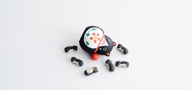 可愛らしいフォルムと表情、思わずほっこりしてしまいそうな「福猫ボウリング」。見ているだけでほっこりした気持ちにさせられる、手作りならではの独特のテイスト。猫好きさんへの贈り物にはもちろん、縁起物としてお祝いのギフトにもぴったりです。