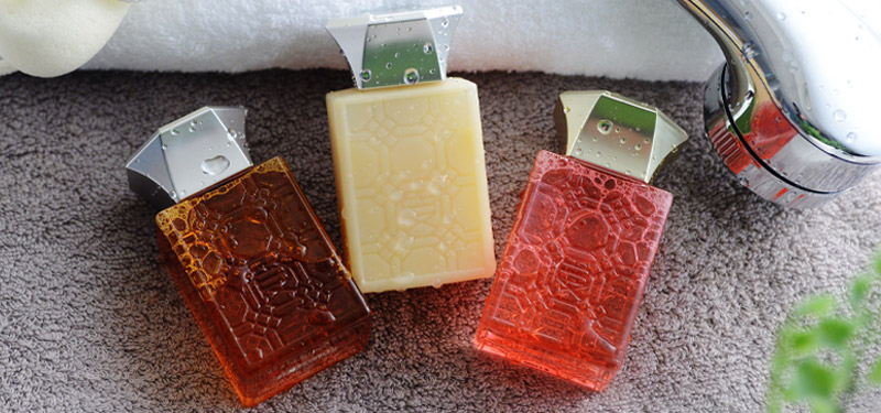 まるで香水瓶のような、美しい装飾が施されたボトルに入っているトラベルセット。その使用感や仕上がりにも心満たされる方はきっと多いはず。