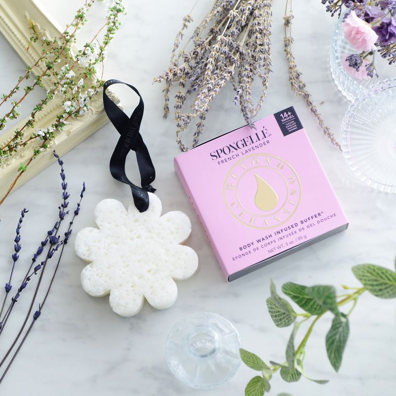 ソープがたっぷり染み込んだ お花型のボディスポンジ フレンチラベンダー/SPONGELLE