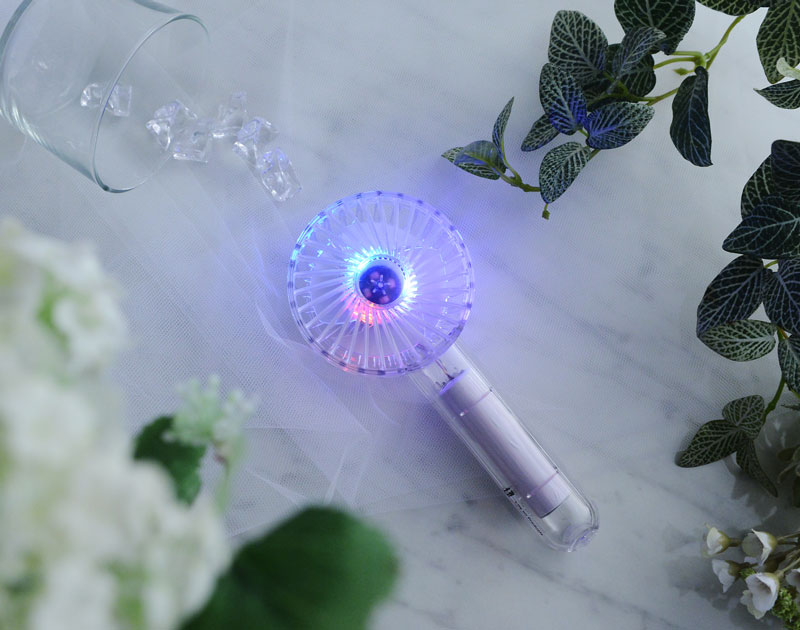 “推し活”の新たな必需品!?クリアなデザインが目を惹くハンディファンは、光るLEDライトを搭載。ボタンを長押しするとポップな7色にきらきら光ります。ライブやお祭りはもちろん、暗い夜の散歩にも1台あると安心です。きらきら光るハンディファンで、夏の夜を思いっきりお楽しみください。