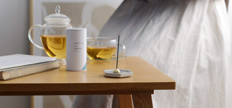 ジャスミン&ホワイトティーの香りのお香が新登場。甘さのあるジャスミンと、レッドシダーやローズの香りも纏わせた、香水のように重なりのある香りのお香ができました。
