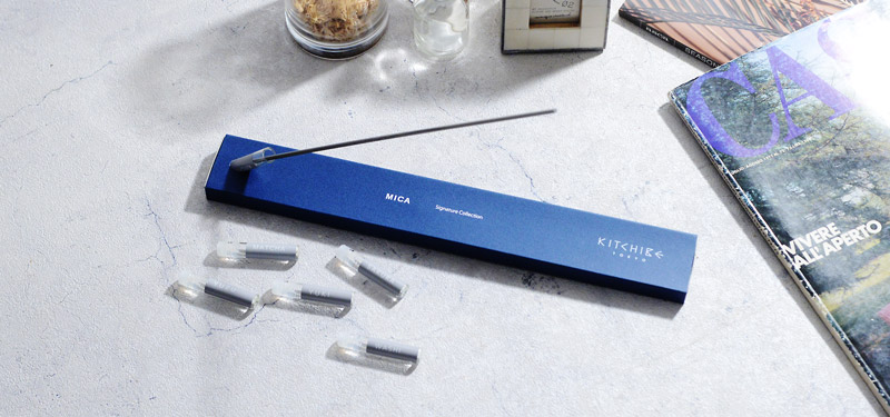 澄み渡る空や海を連想させる「青」をテーマにしたお香。香りだけでなく、その見た目からも涼しさを感じられそうです。