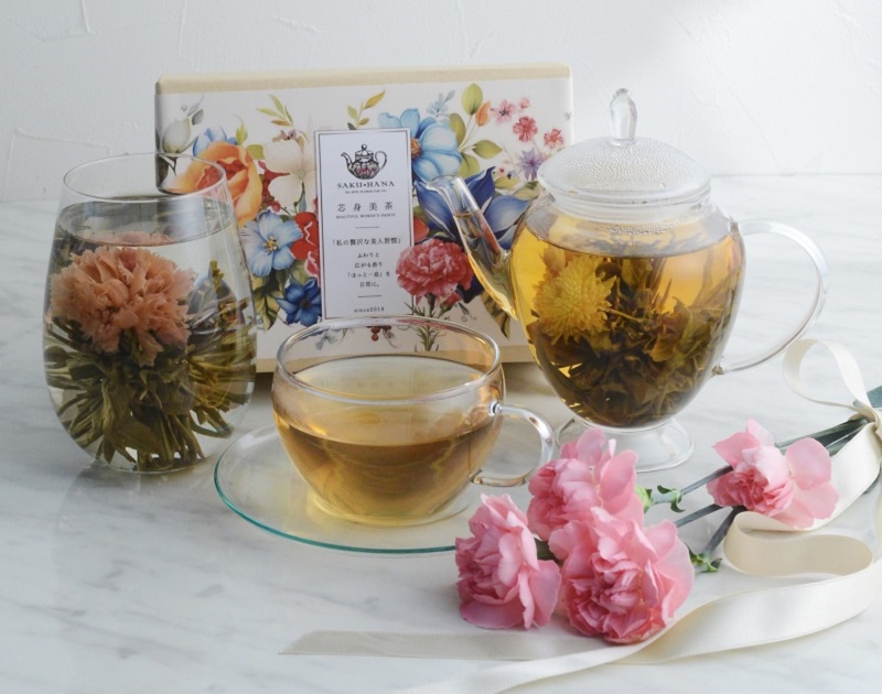 中国茶の一種である「工芸茶」にお湯を注ぐと…だんだん茶葉が広がり、美しいお花が優雅に咲きます。深い味わいと豊かな香りが特徴の中国茶は、ゆっくり過ごしたい自分時間にも、みんなで楽しむティータイムにもぴったり。「頑張りすぎずに、ひと息ついてね。」そんな想いを込めて、贈ってみてはいかがでしょうか。