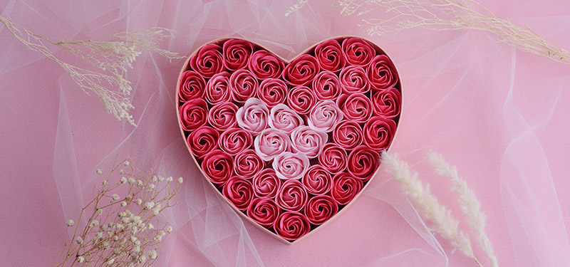 ハートボックスに詰め込んだ 飾れるフラワーバスペタル