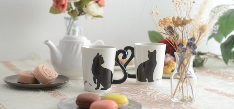 しっぽを合わせて♪猫シルエットペアマグカップ