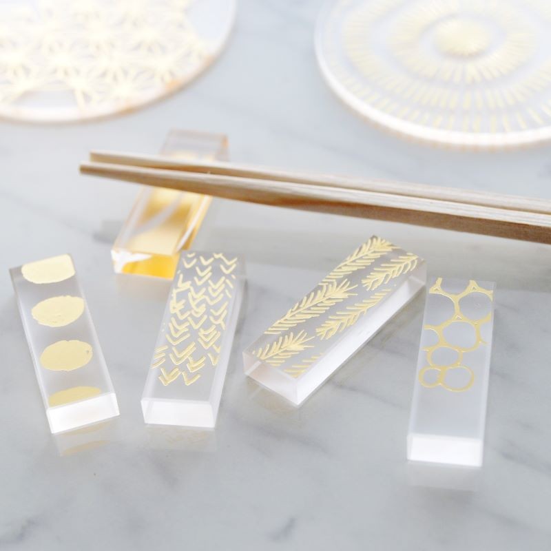 ゴールドの箔が輝く透明な箸置き 「い」5客セット/toumei