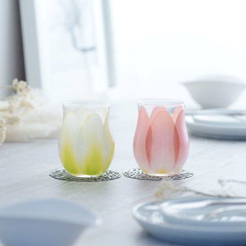 テーブルの上に春到来 チューリップペアグラス/Floyd