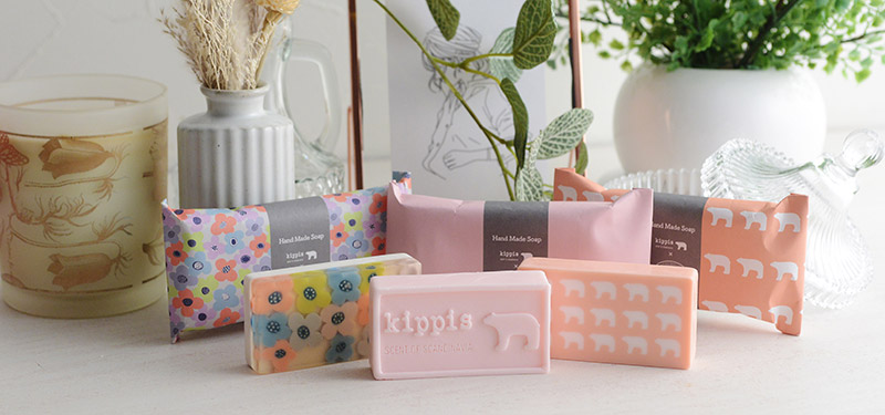 箱を開けると、かわいらしい3種のパッケージが目を惹くこちらのアイテム。手作りの純植物性石けんをつくるソープブランド「liilii(リィリィ)」(R)と、北欧風デザインのブランド「kippis(キッピス)」がコラボしたソープセットです。
