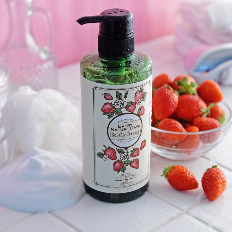 知られざる名産地、神奈川県海老名市のいちごから生まれたボディーソープ。さっぱり&しっとりな洗いあがりと、みずみずしくて甘い香りが魅力です。