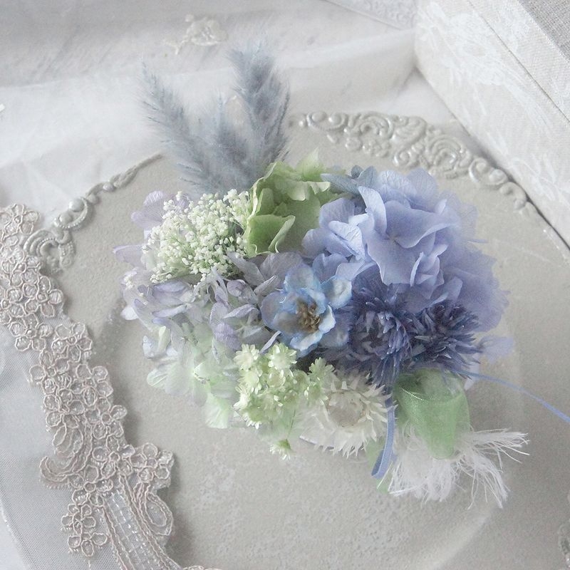花材:プリザーブドフラワー、自然素材のハンドメイドフラワー