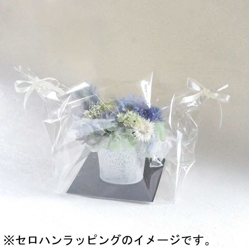 花弁が壊れやすいローズなどが入っていないため、セロハンラッピングでお届けします。