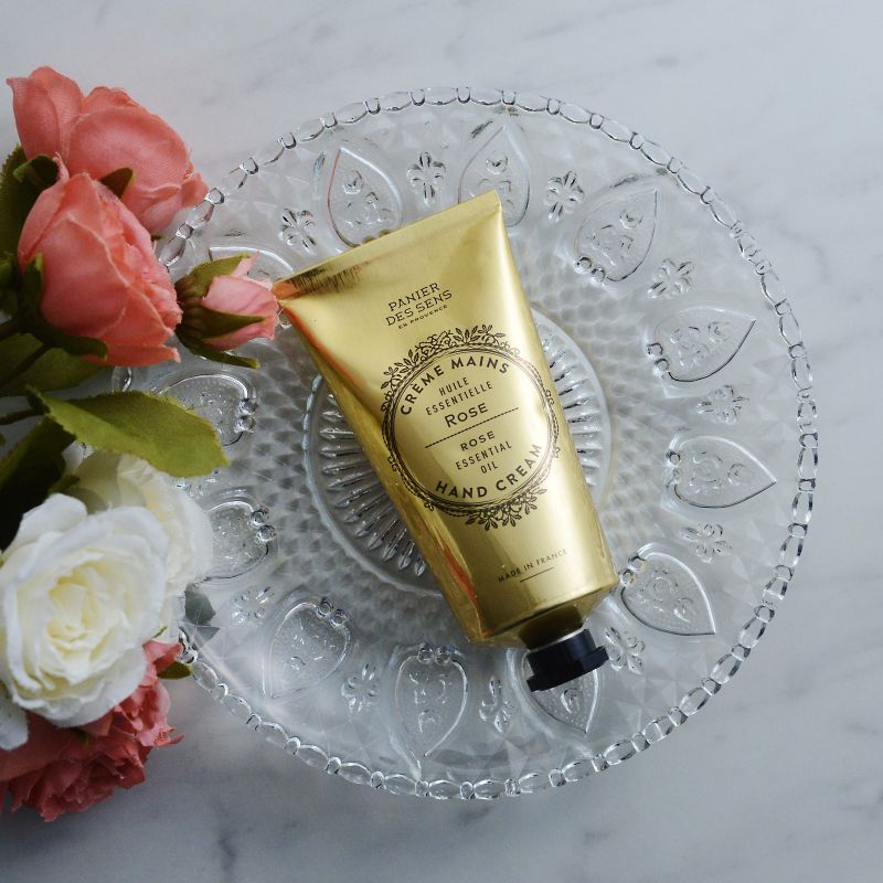 香りの都「グラース」の調香師たちにより、洗練された豊かな香りが施されているパニエ・デ・サンスシリーズ。その中でも、エッセンシャルオイルをふんだんに取り入れ、天然由来成分を94%以上使用している「エッセンシャルズ」。 ハンドクリームにはシアバターを20%配合しているので、少し硬めのテクスチャーですが、手のひらでとろりと溶け、肌にしっとりと馴染みます。