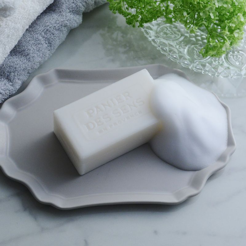 ■ベジタブルソープ プロバンスの伝統的な職人技による、植物油を使用したトリプルミルドソープ。ほのかに香る繊細な泡がしっとりとやさしく洗い上げます。