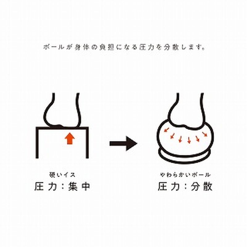 椅子の代わりにバランスボールに座ることで圧力を分散し、美しい姿勢で楽に座れます。
