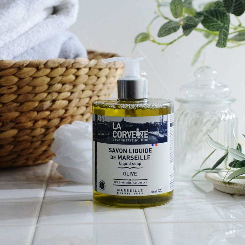 リキッドソープは全身用として。バスルームやレストルームに置いておけば、さっと使える液体ポンプ式で実用性抜群!500mlと、こちらも容量が大きいので長くお使いただけます。 ライフスタイルや気分に合わせて使い分けられるから、初めてマルセイユ石鹸を使う方にもおすすめ。毎日のケアを快適にする、バランスのよい組み合わせです。