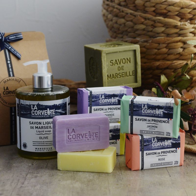LA CORVETTER(R)(ラ・コルベット)は、120年以上にわたりマルセイユ石鹸を作り続けてきた南フランスの老舗ブランド。大釜でじっくり炊き上げる伝統的な釜炊き製法を今も守り、厳しい基準をクリアした本物のマルセイユ石鹸のみを製造しています。 長い歴史の中で磨かれた製法と品質は、世界15カ国以上で愛され続ける理由。確かな背景が、日常使いにも贈答用としても安心感を与えてくれます。