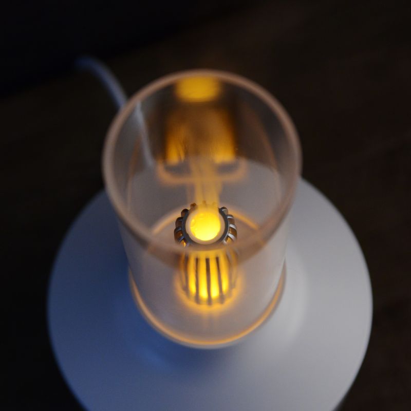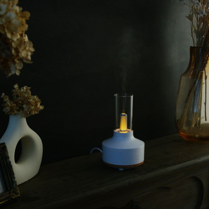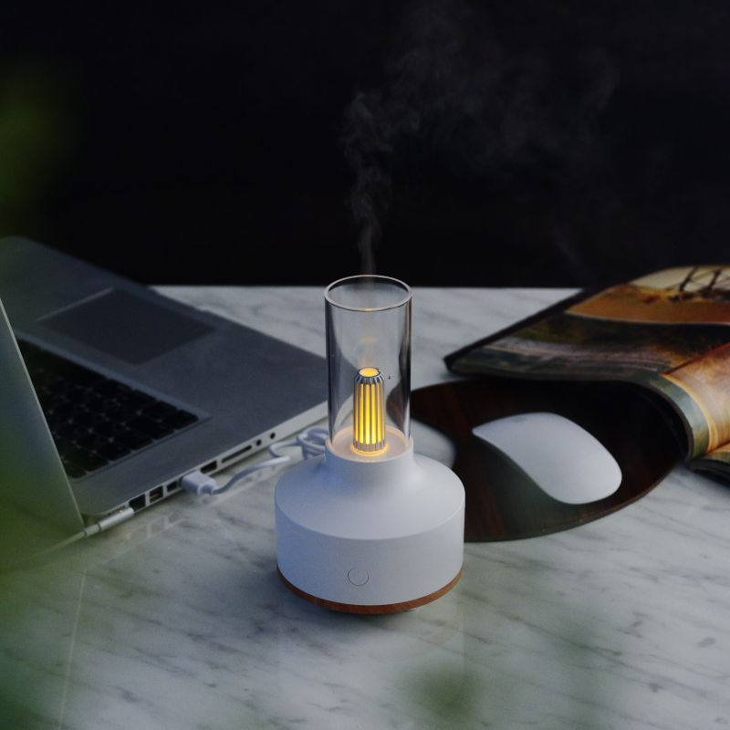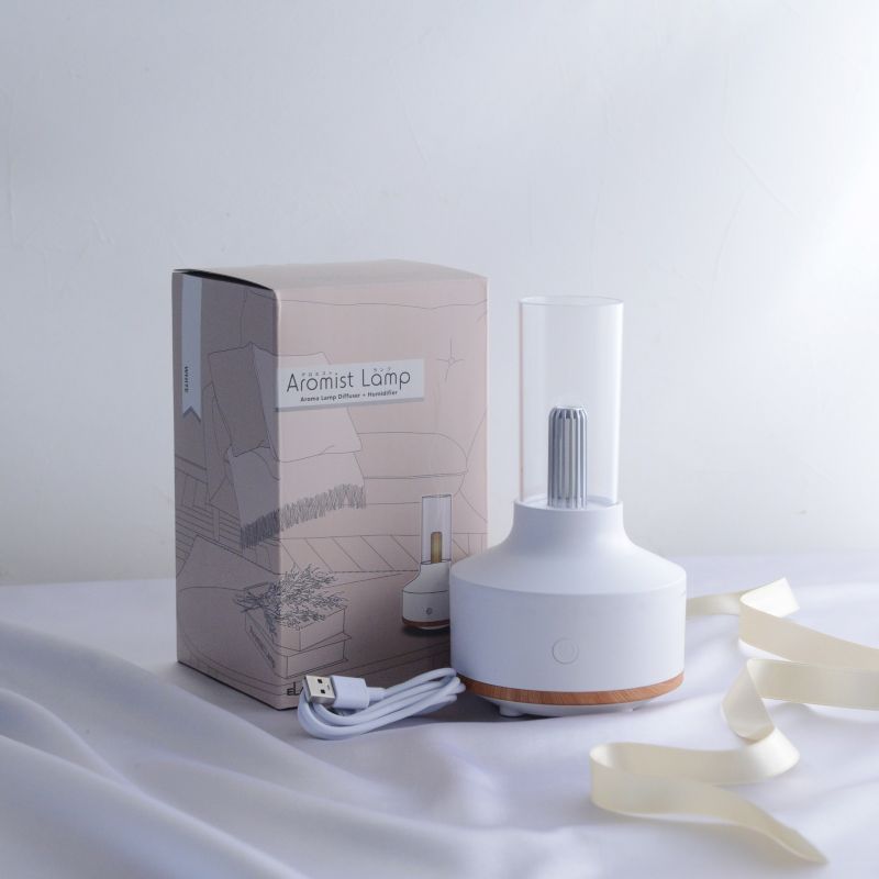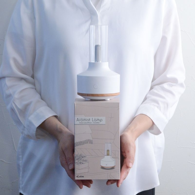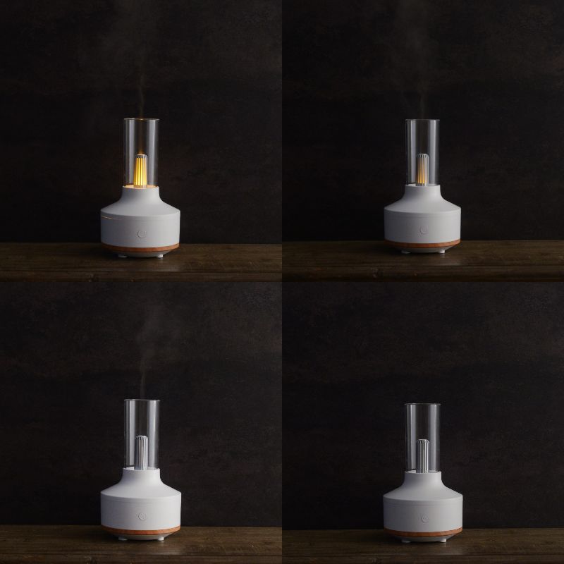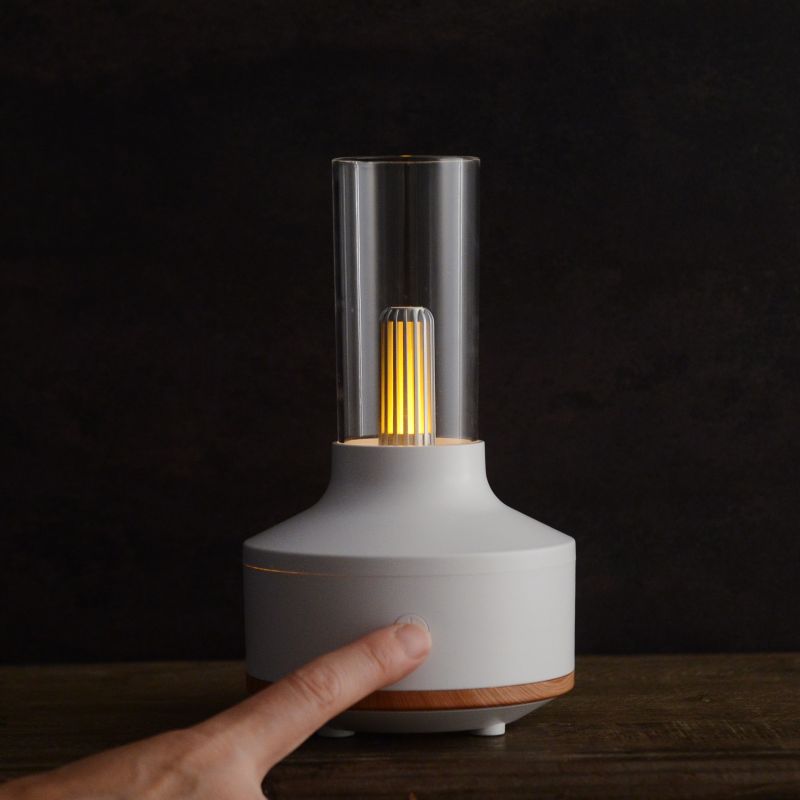 アルコールランプを思わせる懐かしいフォルムに、ミストと光が織りなす幻想的なパーソナル加湿器。清潔感のあるホワイトをベースに木目をアクセントにしたデザイン。お部屋のインテリアにも自然になじみ、ちょっとレトロなランプのようなフォルムです。