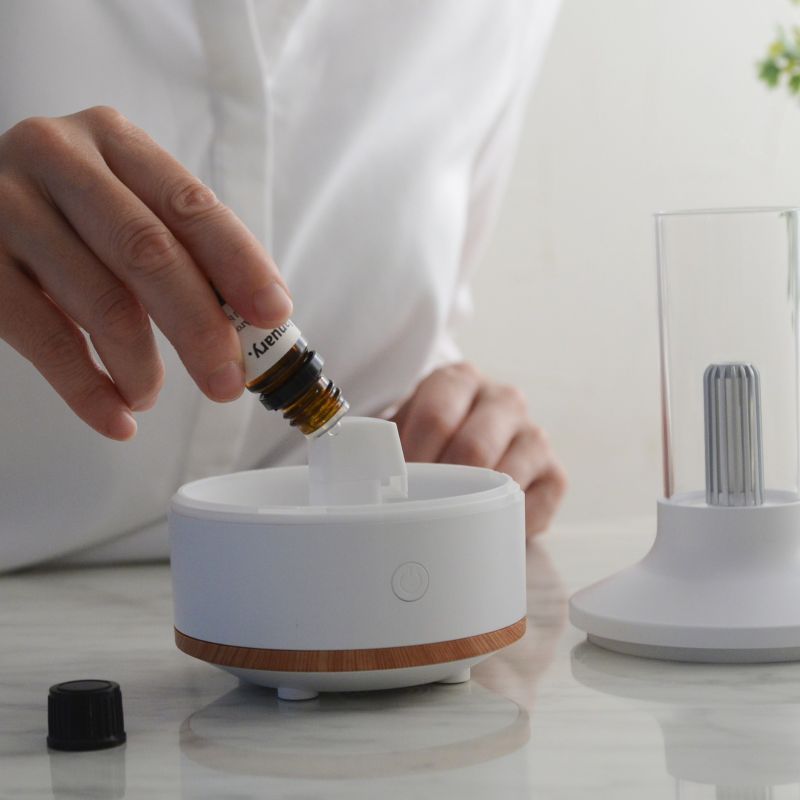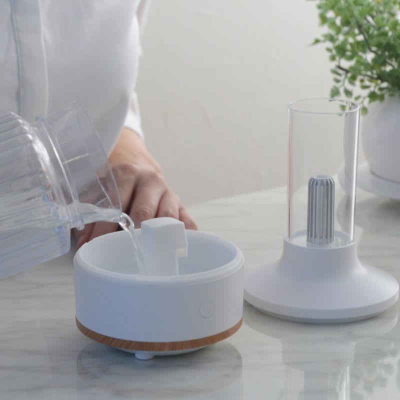 香りを楽しみたいときは、エッセンシャルオイルをタンクの中に数滴たらすだけでOK。アロマディフューザーと加湿器を一体化しているので、これさえあれば、乾燥しがちな季節も心地よい香りとミストで快適に過ごせます。