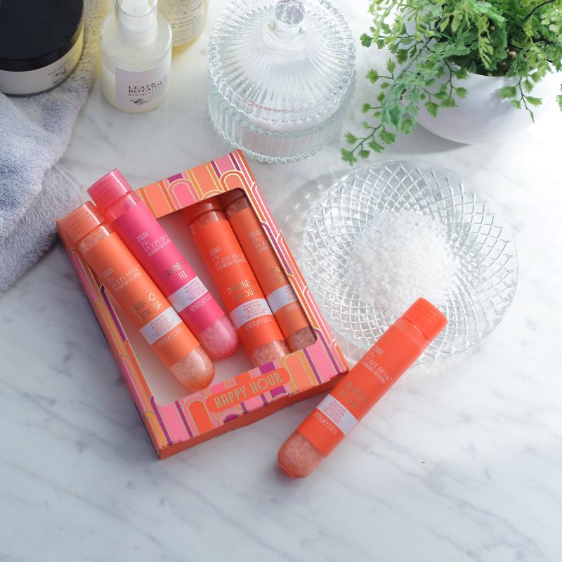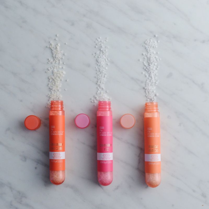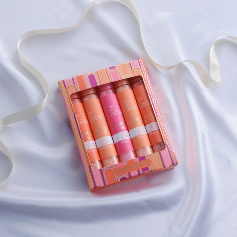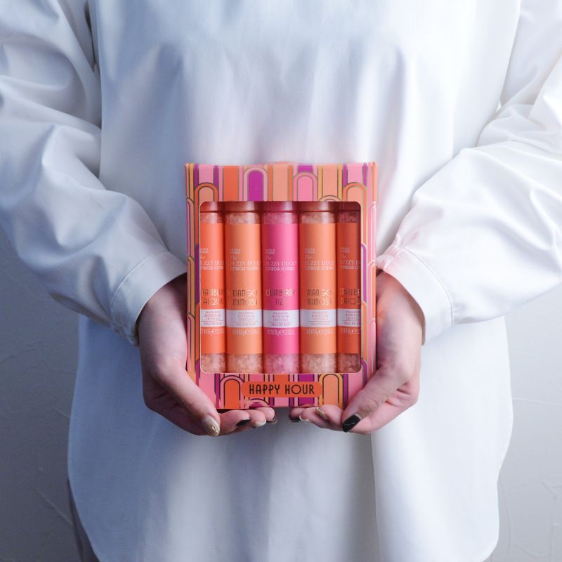 街中がキラキラとデコレーションされ、人々が賑わいはじめるホリデーシーズン。その高揚感をそのまま閉じ込めたような、カクテルの香りのバスソルトです。 試験管のようなピンクグラデーションのスティックには、3種類のカクテルの香りのバスソルトが入っています。大人っぽい香りのコンセプトや大胆な色彩とアールデコ調のパッケージで特別感満載! いつもより時間をかけて楽しみたいバスタイムのお供として、美容意識の高い方や、華やかなイメージの方へ。自信をもって贈ることのできるギフトです。