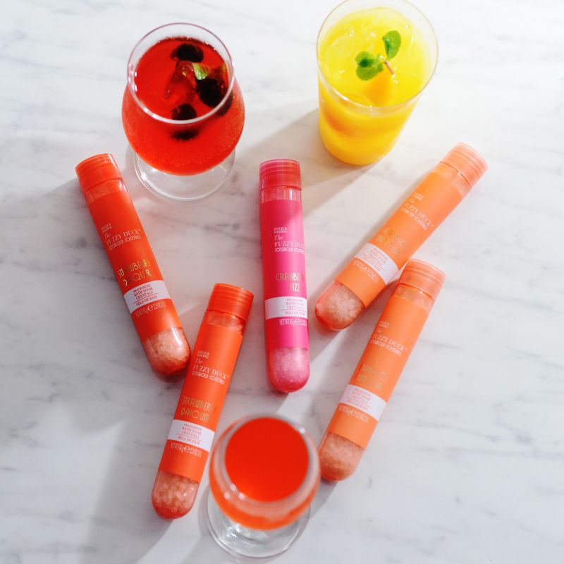 カクテルの香りを閉じ込めたバスソルトで、それぞれがそのフレーバーをイメージしたフレッシュな香りです。半透明のスティックに入っていて、その見た目は本物のお酒のよう。1本65gのソルトは約2回分=計5本入りなので、10回分です。