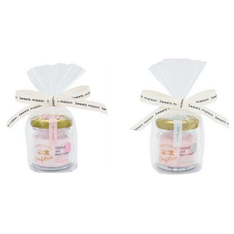 こちらは、かわいい小瓶に入ったハンド&ネイルクリーム。かわいくってロマンティックなデザインと、優しい香りにこだわっているんです。 トロっとしたパステルカラーのクリームは、まるで本物のスイーツのよう。シアバター(シア脂)やハチミツエキス、アロエベラ葉エキスといった天然由来の保湿成分配合なので、手肌を乾燥から防ぎつつ、香りをお楽しみいただけます。4種類あるので、気分に合わせて香りを変えて使っていただけますよ。 置いておくだけでもかわいい、お菓子みたいにキュートなアイテムで、毎日を笑顔でハッピーにしませんか。
