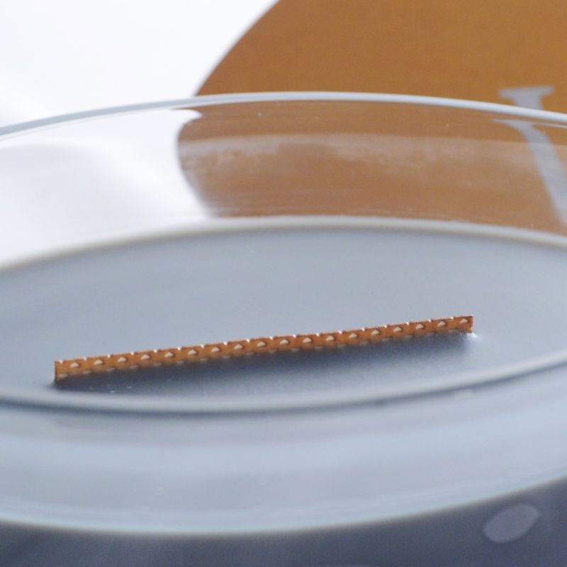 木製芯でロウを吸い上げ、安定的に火を灯すことは実はとても難易度が高いそう。それを実現させた秘密は、独自の柔らかいブレンドワック ス(ソイワックス配合)と、特殊加工された独自の木製芯との絶妙な組み合わせによるもの。幅7cmの木製芯は、よく見ると三角形の穴が連なる網目状の板。波のような曲線を描く美しい炎を生み出し、燃焼音を安定させるために考えられた設計です。