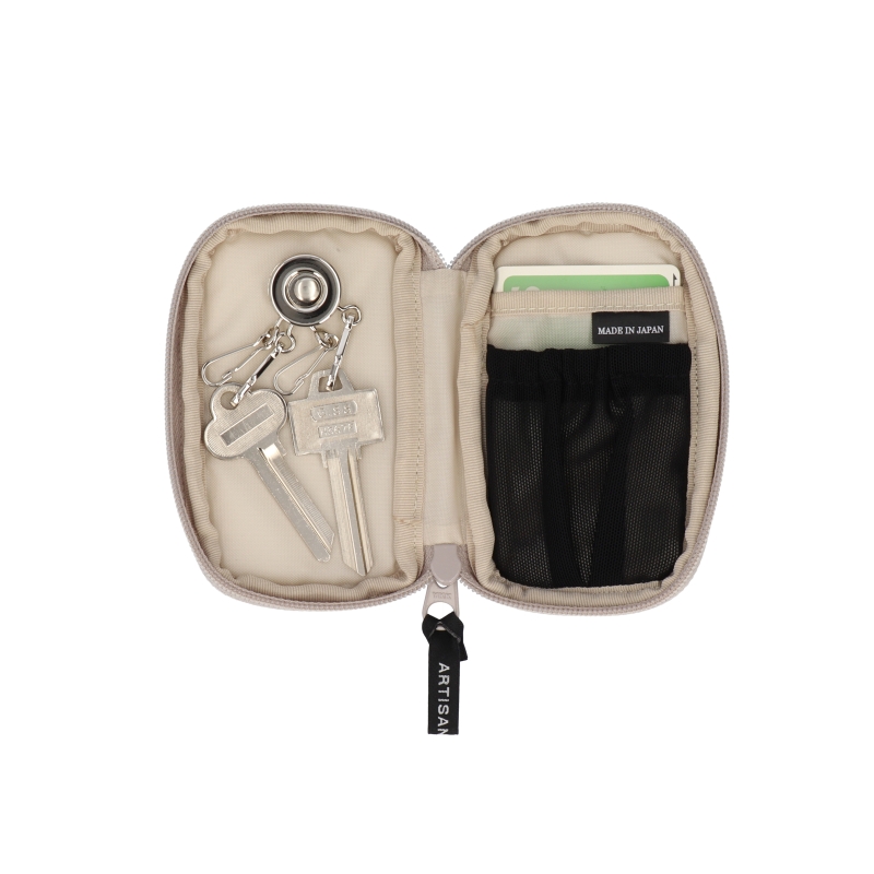 くるくる回る独特のキーパーツが特徴的。鍵回りの収納はこれ一つで解決のキーポーチです。家の鍵はもちろん、キーレスエントリーの搭載車のリモコンを入れられるポケットもついています。ICカードを入れられるポケットもあり、毎日の移動にはかかせません。中のポケットにETCカードや運転免許証、スマートキーを入れて、外のポケットに駐車券を入れておけば、ドライブでの忘れ物も防げます。 手ぶらでお出かけしたい方にもおすすめ。毎日の移動にかかせないアイテムを、ライフスタイルに合わせて、さっと持ち歩けるのが魅力です。