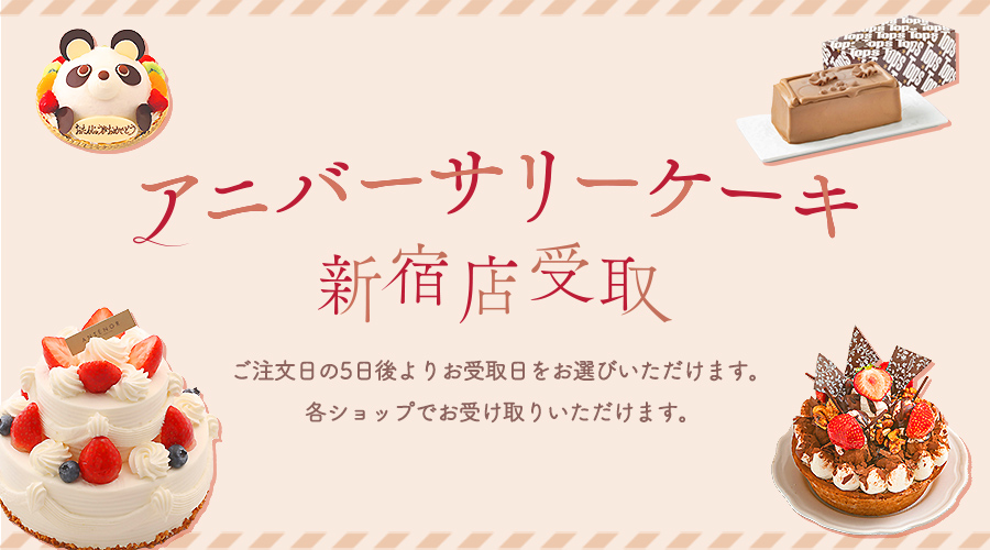 トップページ > スイーツ&フード > デパ地下スイーツセレクション > アニバーサリーケーキ新宿店受取