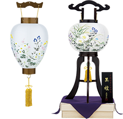 絵柄入りの盆提灯は、親族や知人の方が施主の方にお贈りします。一対でお贈りするのが正式ですが、必ずしも一対でなくても構いません。